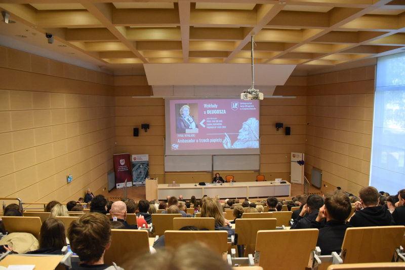 The meeting with Prof. Hanna Suchocka took place as part of the “Lectures at Długosz” series organised by the staff of the university (April 22, 2026). Given the speaker’s vast achievements and the breadth of topics she could address, the lecture was titled “Ambassador to Three Popes” - allowing a focus on her diplomatic service at the Holy See from 2001 to 2013.