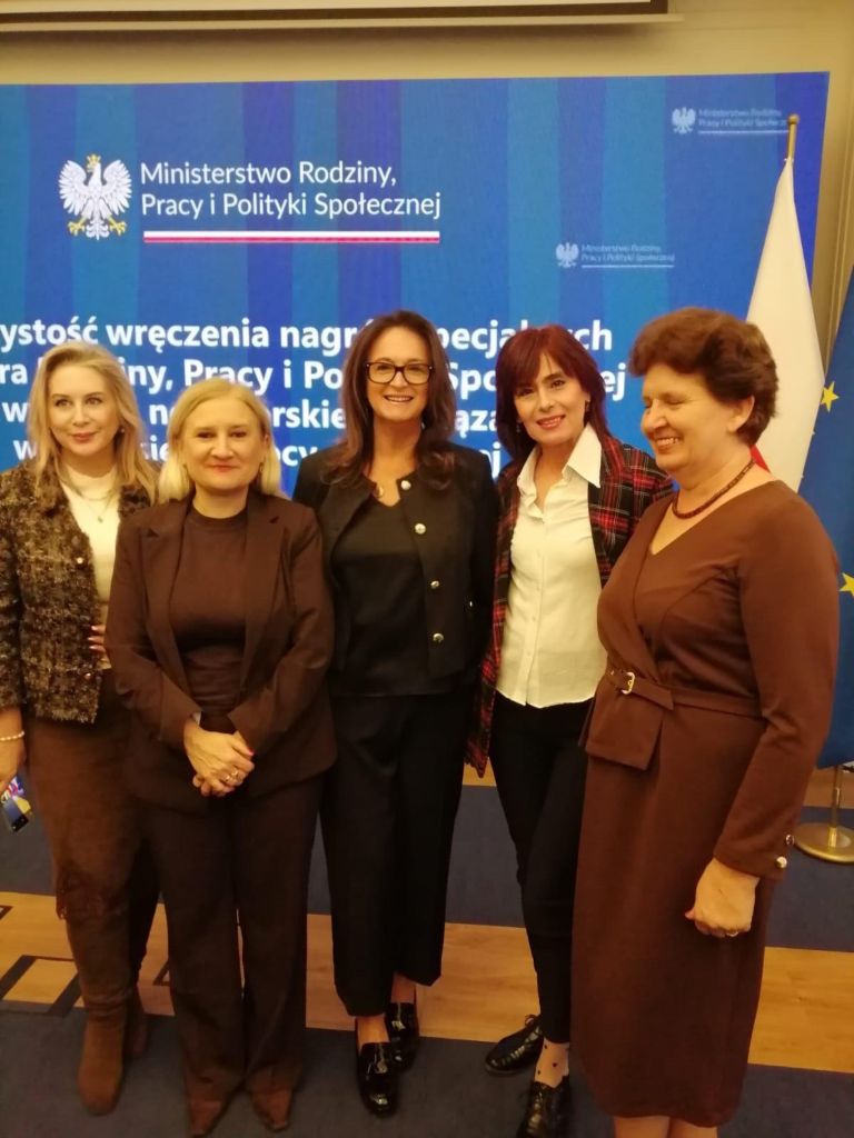 Prof. Mariola Mirowska - a member of the Central Examination Committee for Professional Specialisation Degrees of Social Workers took part in the ceremony of awarding special prizes for outstanding and innovative solutions in the field of social assistance in 2025 at the invitation of the Minister of Family, Labour and Social Policy Agnieszka Dziemianowicz-Bąk,. It was an opportunity to highlight and appreciate the exceptional work carried out every day by social workers.