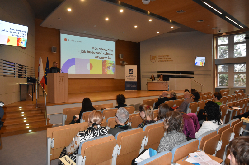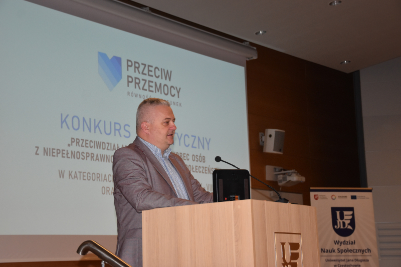 21 listopada 2025 r. w auli Auditorium Maximum Uniwersytetu Jana Długosza przy ul. Waszyngtona 4/8 odbyła się konferencja naukowa „Przeciw przemocy. Równość i szacunek” objęta honorowym patronatem Prezydenta Miasta Częstochowy Krzysztofa Matyjaszczyka oraz Wydziału Nauk Społecznych Uniwersytetu Jana Długosza w Częstochowie. Wydarzenie zostało zorganizowane dzięki współpracy nauczycieli Zespołu Szkół Specjalnych nr 23 im. Janusza Korczaka w Częstochowie, Stowarzyszenia SOWA oraz pracowników Wydziału Nauk Społecznych UJD. Celem konferencji było zwiększenie świadomości na temat przemocy, w tym hejtu, których doświadczają osoby z niepełnosprawnościami oraz budowanie postaw sprzyjających szacunkowi i równości.