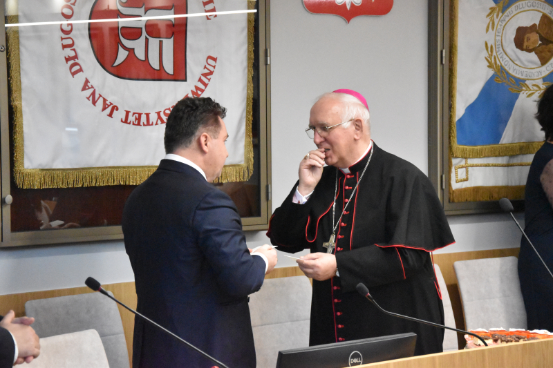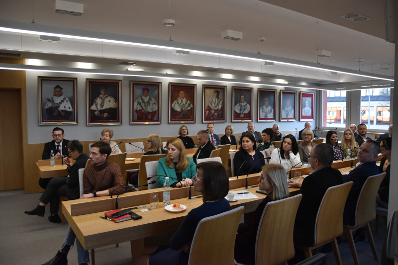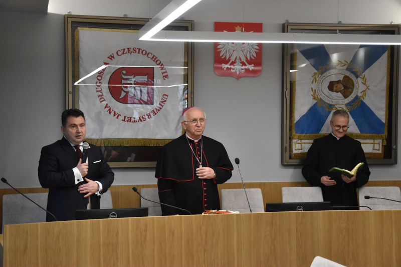 Świąteczne spotkanie opłatkowe z udziałem członków Senatu oraz władz rektorskich Uniwersytetu Jana Długosza w Częstochowie odbyło się 17 grudnia 2025 roku (w Sali Senatu UJD).