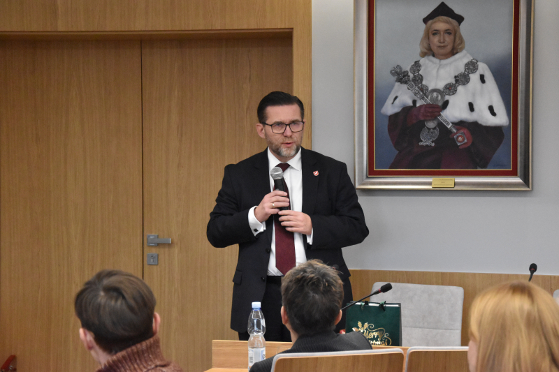 Do uczestników spotkania zwrócił się p.o. Rektora UJD prof. dr hab. h.c. Bogusław Przywora składając życzenia na czas Świąt Bożego Narodzenia oraz rozpoczynający się nowy 2026 rok.