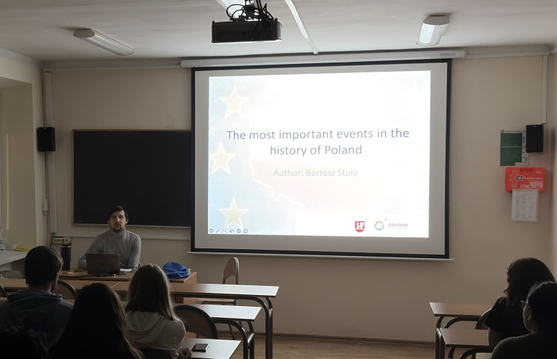 Kolejnym punktem programu był wykład poświęcony historii i kulturze Polski, przygotowany przez dr. Bartosza Stułę. Podczas prezentacji uczestnicy mogli poznać najważniejsze wydarzenia historyczne, które kształtowały polską tożsamość narodową, a także wybrane elementy polskiego dziedzictwa kulturowego, tradycji oraz zwyczajów.