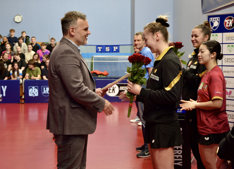 Organizator AZS UJD zadbał o należytą oprawę tego widowiska. Przed meczem mistrzyni Polski Paulina Krzysiek (tytuł ten wywalczyła w dniach 20-22 marca w Szczecinie) otrzymała list gratulacyjny od władz Uczelni. Przekazał go prof. Jacek Wąsik (dyrektor Instytutu Nauk o Kulturze Fizycznej Collegium Medicum im. dr Władysława Biegańskiego, członek Senatu UJD). Pismo z powinszowaniami od władz miasta Częstochowy wręczył z-ca prezydenta Łukasz Kot. Mistrzyni otrzymała również kwiaty od KU AZS UJD. Drużynę AZS dopingowali licznie zgromadzeni studenci. W sobotę (28 marca 2026 roku) w Zielonej Górze odbędzie się półfinał pucharu Polski z udziałem czterech drużyn. AZS UJD Częstochowa reprezentowały: Emico Taguchi, Tania Bilenko, Paulina Krzysiek, Julia Jędrasiak i Liliana Nowak
