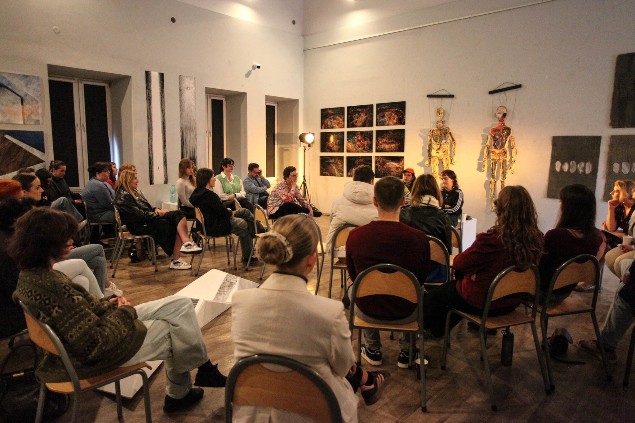W Galerii 113 Wydziału Sztuki Uniwersytetu Jana Długosza w Częstochowie odbyło się wyjątkowe spotkanie z reżyserką Kaliną Jagodą Dębską oraz dramaturżką Anną Mazurek – twórczyniami spektaklu „Jeśli przecięto cię na pół”, opartego na powieści Łukasza Barysa.