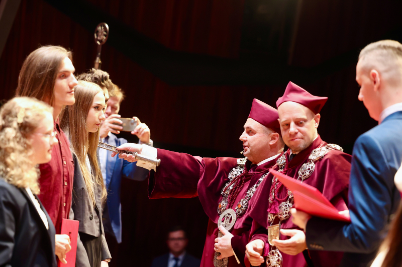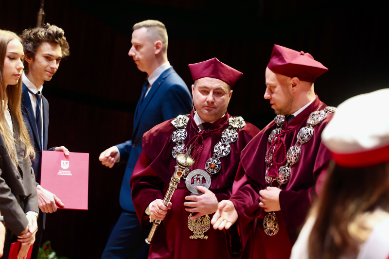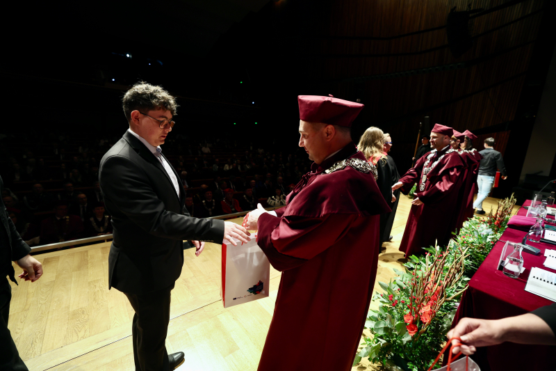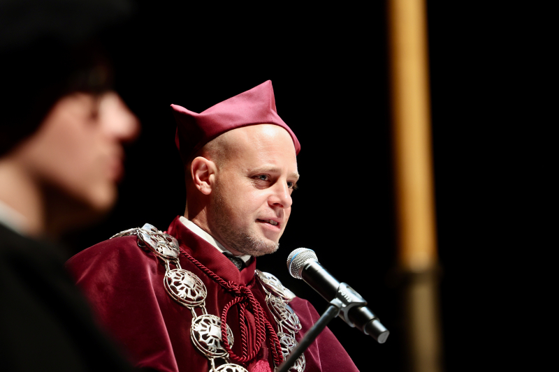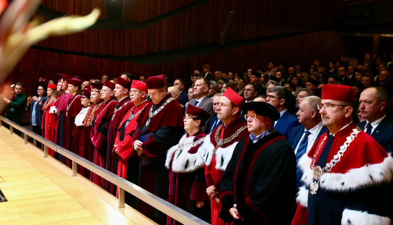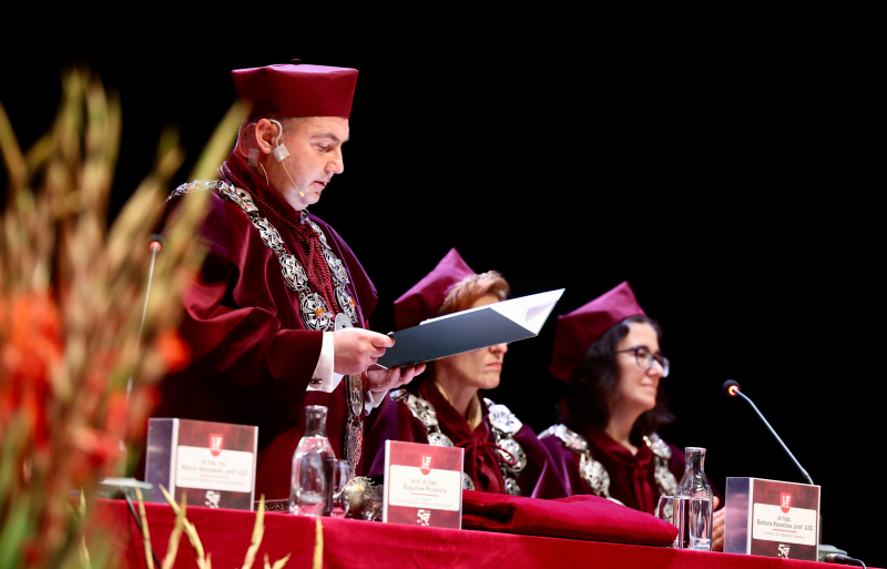 - Z pewnością rok akademicki 2025/2026 zapisze się w dziejach Uczelni nie tylko jako okres jubileuszu, który będziemy świętować wspólnie z Miastem Częstochowa i 200 -leciem połączenia Starej i Nowej Częstochowy, ale również jako czas wytężonej pracy zmierzającej do rozbudowy Uniwersytetu i powiększania jego dorobku – przekonywał p.o. Rektora prof. dr hab. Bogusław Przywora. – Przed nami wiele wyzwań przede wszystkim naukowych. Będzie to rok ewaluacji dyscyplin naukowych, a także akredytacji kierunku lekarskiego przez Polską Komisję Akredytacyjną. Nie zabraknie również zadań związanych z rozbudową zaplecza naukowo-badawczego. Mam tu na myśli ważną inwestycję – budowę wieloprofilowego centrum symulacji medycznych. Głęboko wierzę, że cel ten uda się zrealizować w już najbliższych miesiącach. Nie zapominamy o dydaktyce – chcielibyśmy kształcić z jeszcze większymi niż dotychczas sukcesami, tak by studenci i doktoranci mogli czerpać jeszcze większą satysfakcję z naszej działalności. Będziemy się starać pracować nie tylko na rzecz Częstochowy, ale równie całego regionu proponując różne aktywności popularyzujące wiedzę i umiejętności. Celem jest docieranie z ciekawą ofertą kulturalną i sportową do licznych środowisk i społeczności. Liczę na zaangażowanie w ten proces całej wspólnoty akademickiej.