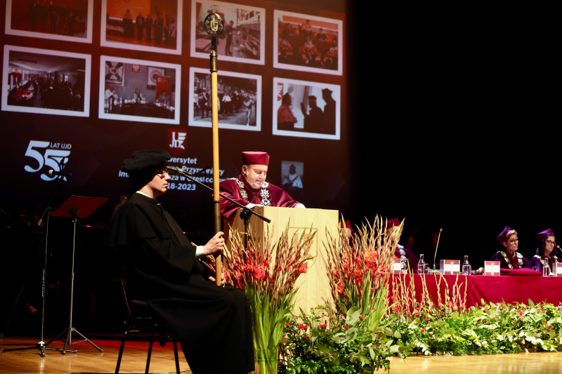 Charakterystyczny stuk laską i formuła wypowiedziana „Quod felix, fastum fortunatumque sit” (pol. "Oby to było dla dobra, szczęścia i pomyślności”) przez p.o. Rektora prof. dr. hab. Bogusława Przyworę zainaugurowała 55. rok akademicki w Uniwersytecie Jana Długosza w Częstochowie. Uroczystość z uwagi na Jubileusz oraz licznych, dostojnych gości, którzy przybyli świętować z członkami wspólnoty akademickiej, odbyła się w Filharmonii Częstochowskiej im. Bronisława Hubermana (6 października 2025 roku).