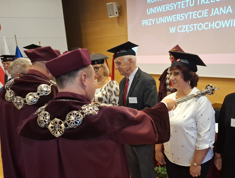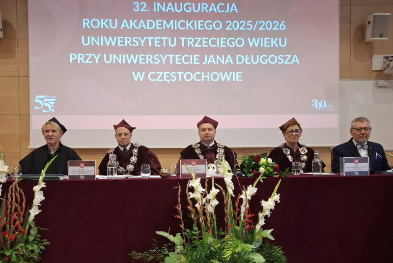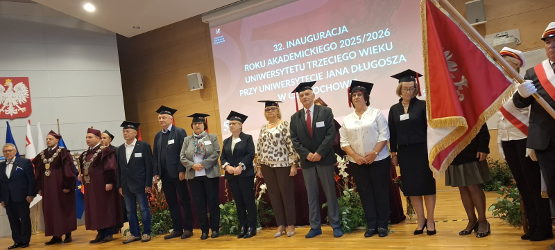 W dniu 9 października w uroczystej i radosnej atmosferze, w wypełnionej po brzegi Auli Auditorium Maximus odbyła się 32. Inauguracja roku akademickiego na naszym Uniwersytecie Trzeciego Wieku działającym przy Uniwersytecie Jana Długosza w Częstochowie. Rok akademicki 2025/2026 rozpoczyna 841 słuchaczy - w tym po raz pierwszy 141 osób. Oprócz władz rektorskich w Inauguracji uczestniczyli przedstawiciele władz politycznych, samorządowych naszego województwa i miasta Częstochowy, przedstawiciele zaprzyjaźnionych UTW, instytucji kultury oraz ponad 400 słuchaczy UTW. Podczas Inauguracji p.o. Rektora Uniwersytetu Jana Długosza w Częstochowie, Prorektor ds. Nauki i Badań Naukowych prof. dr hab. Bogusław Przywora wręczył legitymacje studenckie nowym słuchaczom. Dyplomy i podziękowania otrzymali także słuchacze, którzy wzięli udział w XVII Olimpiadzie Uniwersytetów Trzeciego Wieku i Organizacji Senioralnych „Trzeci Wiek na start”, która odbyła się 13 września 2025 roku w Łazach i gdzie zdobyli 6 medali.