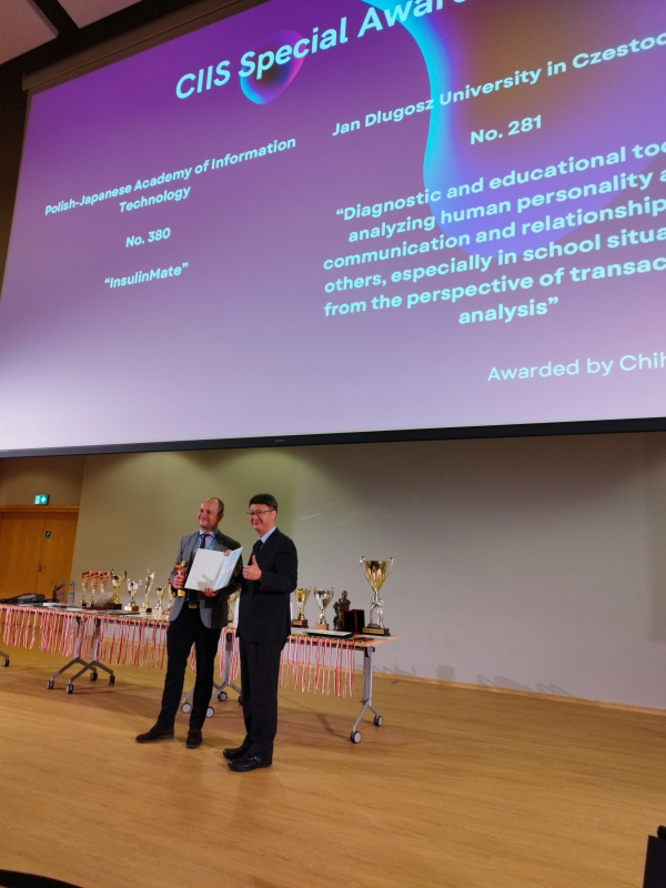 1. NAGRODĘ SPECJALNĄ Special Award Chinese Innovation & Invention Society (TAIWAN) dla rozwiązania „Narzędzie diagnostyczno-edukacyjne do analizy osobowości człowieka oraz jego komunikacji i relacji z innymi, zwłaszcza w sytuacjach szkolnych, z perspektywy analizy transakcyjnej”, twórcy rozwiązania: Adrianna Sarnat-Ciastko, Anna Pierzchała, Dorota Gębuś, Zbigniew Łęski, Zbigniew Wieczorek, Justyna Warwas;
