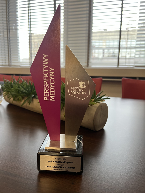 Prof. Bogusław Przywora odebrał nagrodę LIDER - EDUKACJA DLA ZDROWIA za zaangażowanie w rozwój polskiej nauki i szkolnictwa wyższego, pielęgnowanie i promowanie dziedzictwa akademickiego, jego rozwój, racjonalizację programów i umiejętność dostosowania ich do zmieniającego się otoczenia.