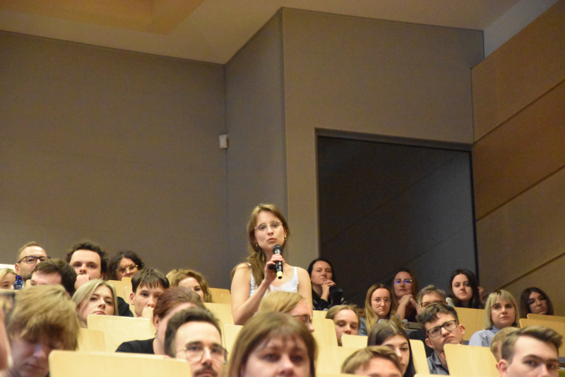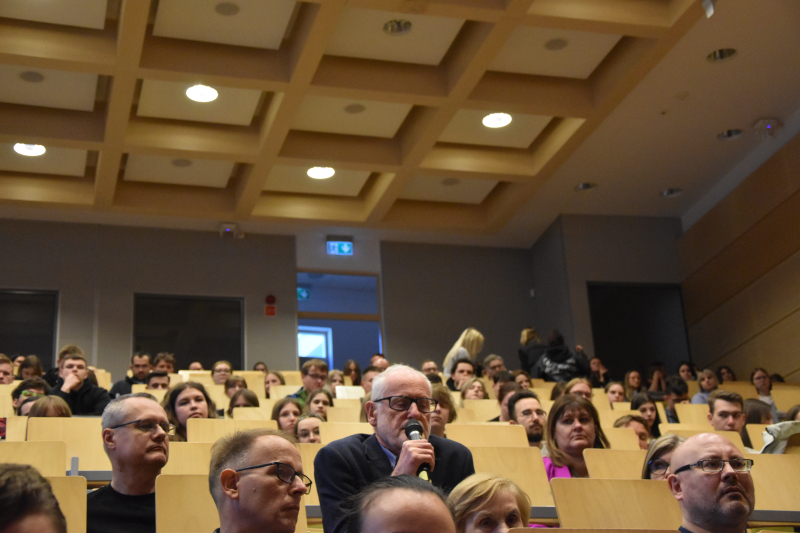 Na koniec spotkania prof. Suchocka odpowiadała na pytania płynące z audytorium. Wspominała pontyfikat Jana Pawła II, Benedykta XVI oraz papieża Franciszka utrzymując, że najbliższe kontakty miała z Papieżem-Polakiem, którego znała już wcześniej, przed swoim przyjazdem na placówkę do Rzymu. Radziła też zgromadzonym na sali studentom i uczniom (goście z LO im. Traugutta), by nie ustawali w realizacji swoich marzeń.