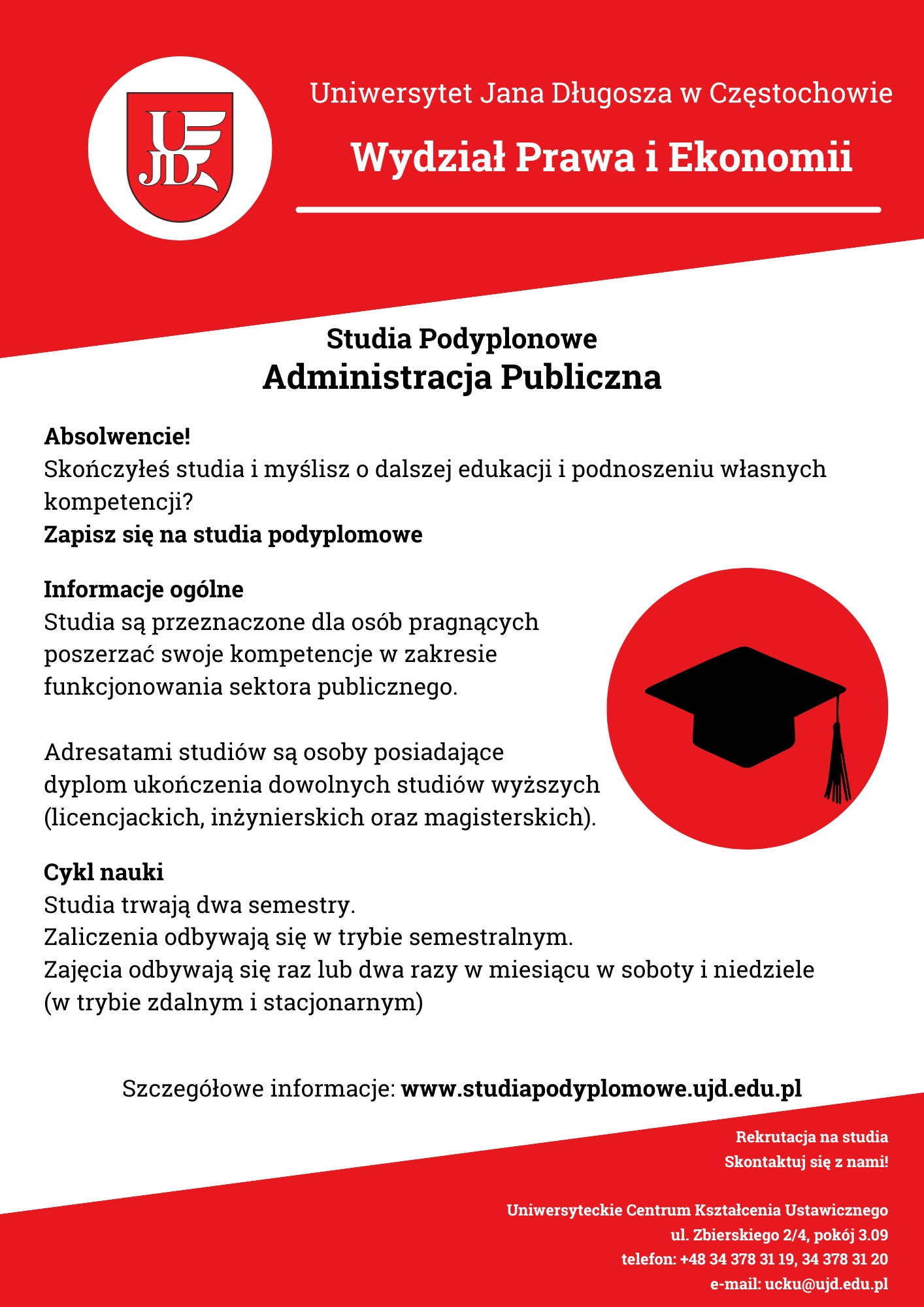 Zapraszamy na studia podyplomowe Administracja publiczna, planowane...